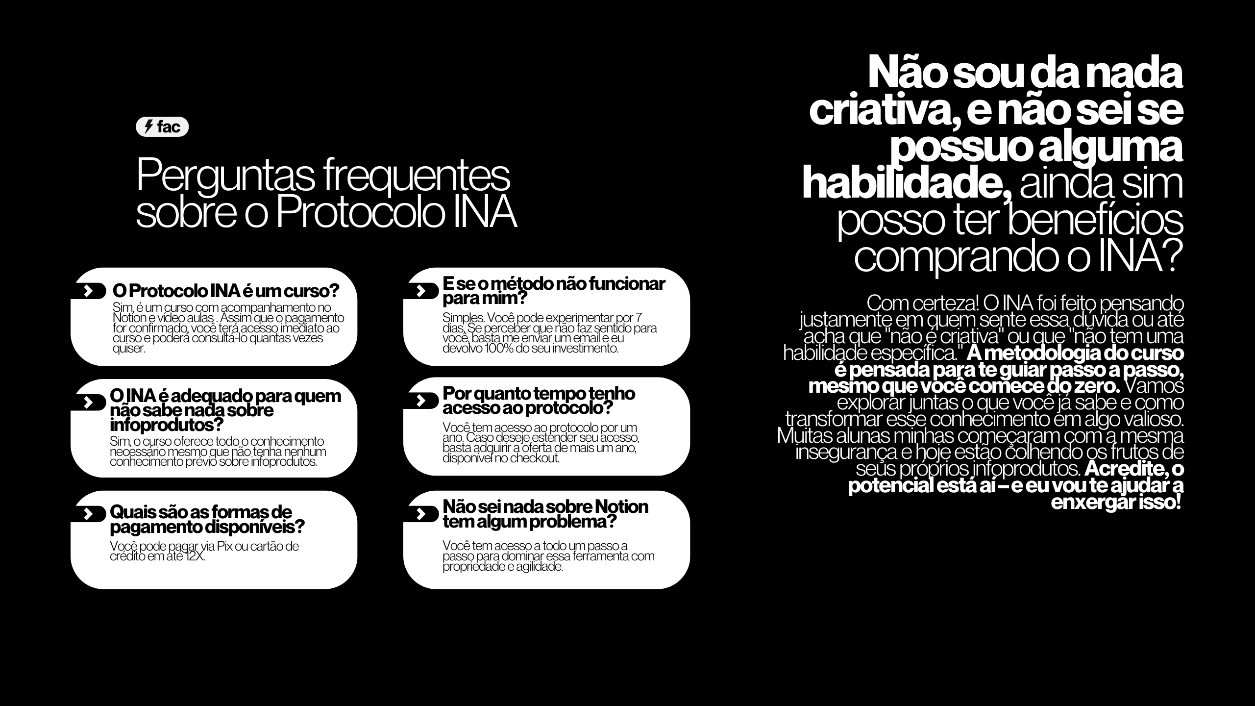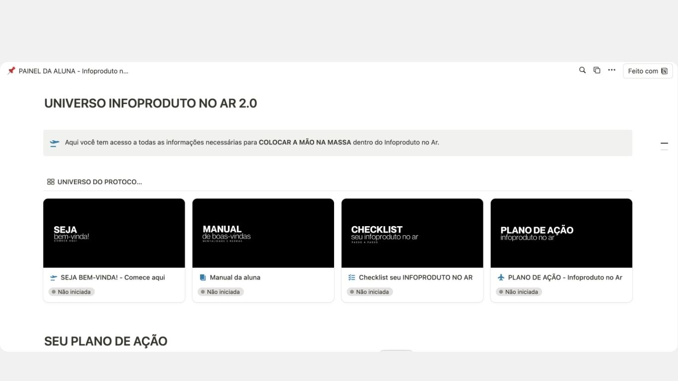 No Protocolo INA você aprende e aplica todo o passo a passo para criar seu infoproduto, com um painel personalizado para cada etapada do processo no Notion com atividades práticas, é o BE-A-BÁ completo, Produtora!