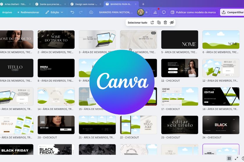 Artes para quem não quer criar nada do zero, ou não tem muita criatividade e deseja montar em segundos seus banner para checkout, Notion e área de membros premium.